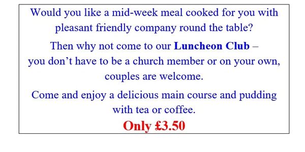 We do need advance notice if you are intending to come (or if you can’t come) so anyone who feels they would like a hot meal provided for them once a week or knows of anyone else who would benefit from this service should contact: