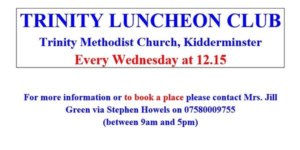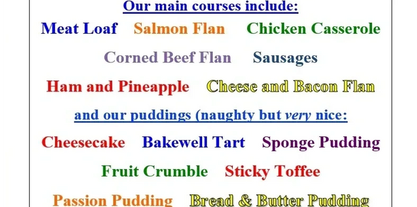 Our Trinity Church Luncheon Club meet on a Wednesday in term-time at 12.30 pm. We provide a hot two-course meal consisting of a main meal and a pudding with tea or coffee to follow costing £3.50 which is all cooked fresh in the kitchen by our expert team of six ladies, supplemented by an extra pair of hands at lunch time to help with the washing up! We are pleased to say that in 2023 we were awarded a 5* classification by the local council!